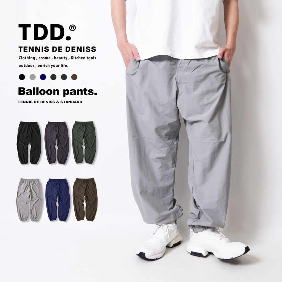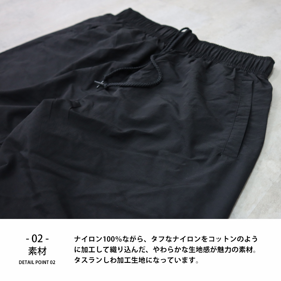 タフなナイロンをコットンのように加工して織り込んだ、やわらかな生地が魅力のテニスデデニスのナイロンパンツ。