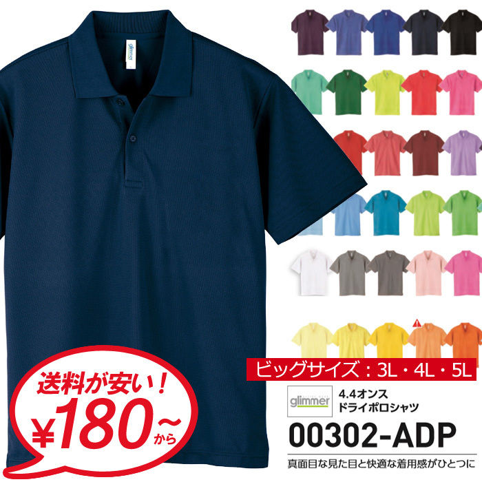 ポロシャツ 半袖 メンズ キングサイズ glimmer グリマー 4.4オンス ドライポロシャツ 大きいサイズ 3L 4L 5L スポーツ ゴルフ ビズポロ 00302-ADP 通販A15