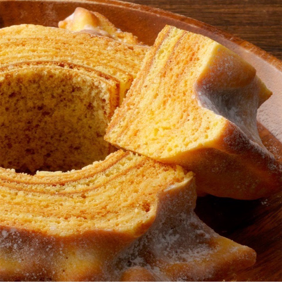 1本1本手作業で焼き上げた、外はモチッと中はしっとりしたアーモンドの香が引き立つハードタイプのバウムクーヘンです。