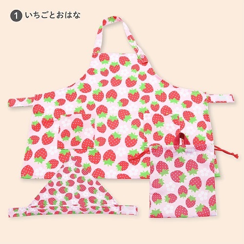 ヤクセル こどもエプロンM 3点セット いちごとおはな エプロン 三角巾 巾着(キャラクターグッズ)