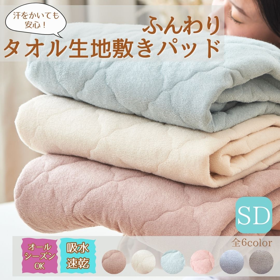 【 セミダブル 】オールシーズン ふんわり タオル生地 敷きパッド パイル 敷パッド 120×205cm 吸水速乾 洗濯可 ベッドパッド