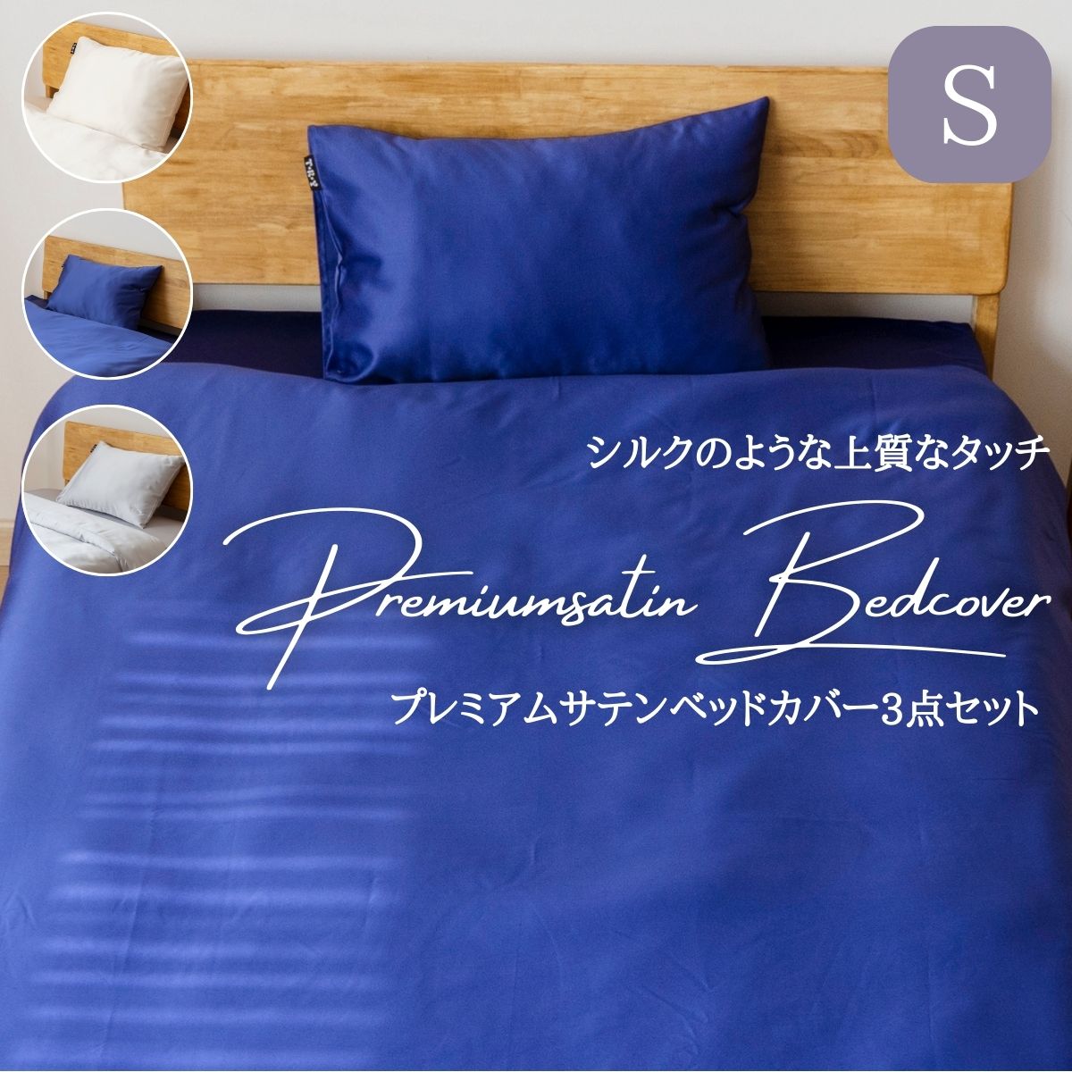 シングル 3点セット プレミアム サテン ベッドカバー シルク風 布団カバー 枕カバー ボックスシーツ 洗える ラグジュアリー 速乾 おしゃれ 厚手 掛け布団カバー