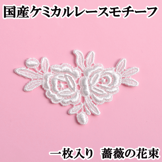 国産ケミカルレース モチーフ 1枚 薔薇の花束 ■ 手芸 クラフト カルトナージュ 飾り 装飾 オフホワイト ドレス ハンドメイド 手作り 衣装 レース ■
