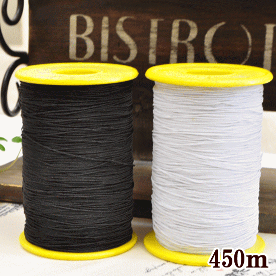ゴムカタン糸450m巻 ■ ハンドメイド 手芸 手作り シャーリングゴム ゴムミシン糸 白 黒 ■