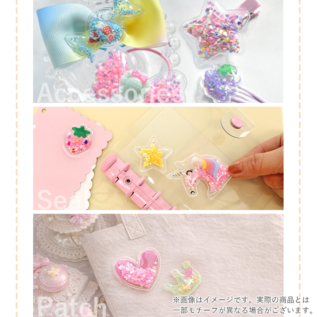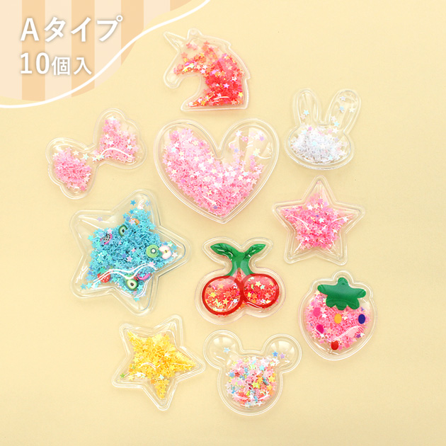 ビニール パーツ ワッペン シャカシャカ 10個セット 全2種 シール アクセサリー クリア ビニールワッペン デコパーツ ヘアゴム キッズ 子供用 スター ハート ユニコーン ゆめかわ モチーフデコ 手芸 手作り ハンドメイド