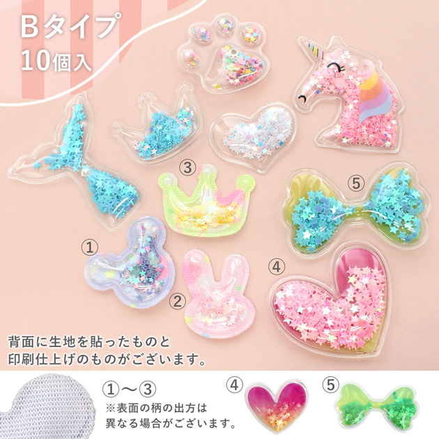 縫える ビニール パーツ シャカシャ カワッペン 可愛い 10個セット 全2種 ■ シール アクセサリー デコパーツ ゆめかわ モチーフ 手作り ■