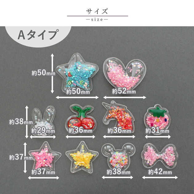 苺・うさぎ・ユニコーンなどの可愛いモチーフまで、大小そろった全10種類。