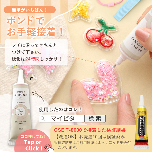 ボンドで簡単に接着してヘアアクセサリー作りや、