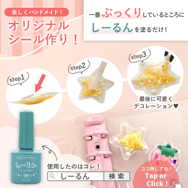 \サンプルに使用したものはこちら/ぷっくり 台座付き パッチンピンヘア クリップ 7個入 2サイズ台座付き ヘアゴム シール帳クリア カラフル バインダー