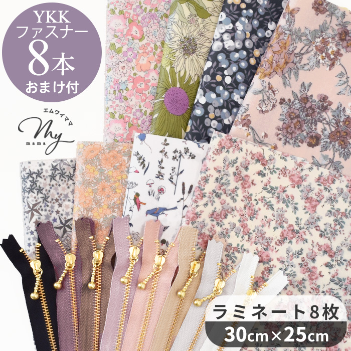 | ■セット内容 | リバティ MYmama別注 国産ラミネート生地 4枚 ・ムーン・モス (ラメグリッター加工) ・ウィルトシャー(パール加工) ・ロザリンド ・セリーヌ リバティ 国産ラミネート生地 4枚 ・セオ ・ミシェル ・スモール・スザンナ ・アデラジャ ★おまけ:YKKファスナー 16cm 玉つきゴールド(030/344/296/245/206/580/316/101/) |