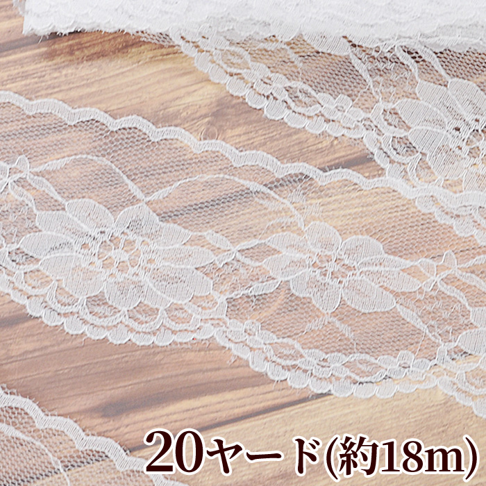 レース 幅広 リボン テープ ブレード おしゃれ 手作り my mama 刺繍 ラッセル 約60mm 〜 65mm 幅 20ヤード 18m ホワイト ■ 白 ドレス 洋服 ワンピース 手芸 ■