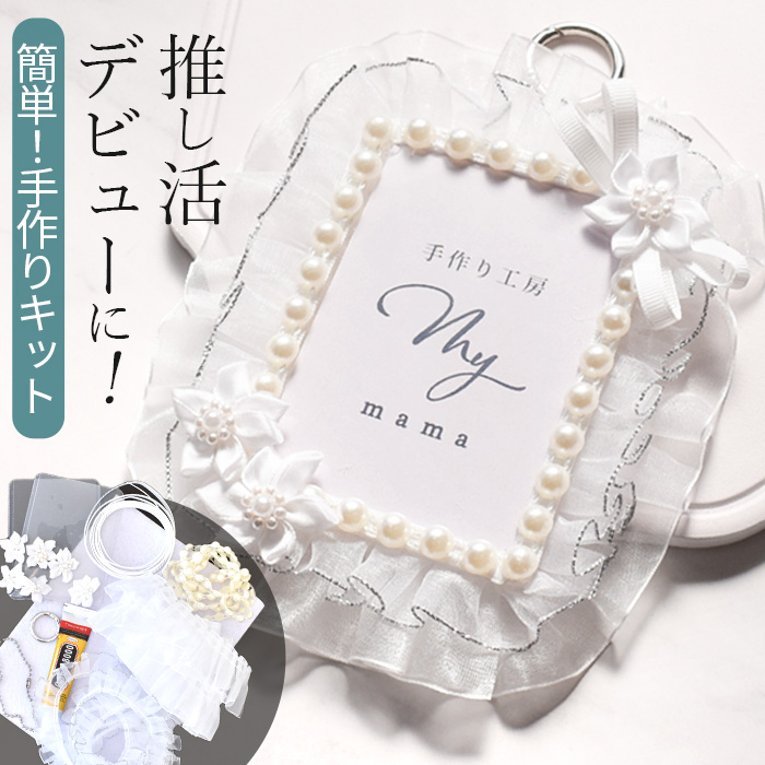 | ■素材 | ・レース、リボン、モチーフ:ポリエステル ・カードケース、パール:プラスチック ・ボールチェーン、カラビナ:鉄 ・多目的ボンド:(成分)キシレン、酢酸エチル、ゴム、SBS樹脂、その他 |