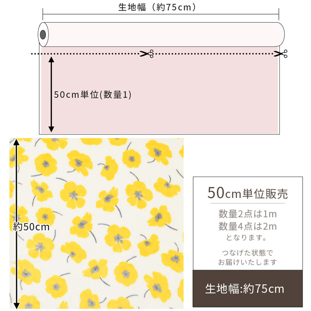 | ■販売単位 | 50cm単位の販売 1mご希望の方は数量2、2mご希望の方は数量4とご注文下さい。 |