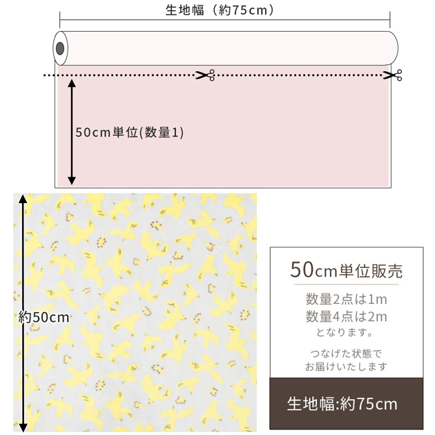 | ■販売単位 | 50cm単位の販売 1mご希望の方は数量2、2mご希望の方は数量4とご注文下さい。 |