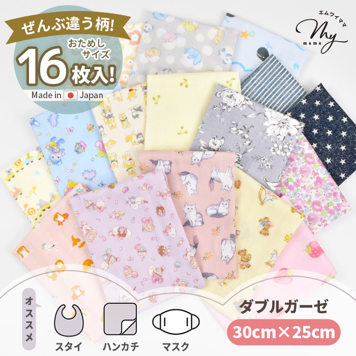| 国産 ダブルガーゼ生地 無地 約48×50cm 7枚セット 2種 |
