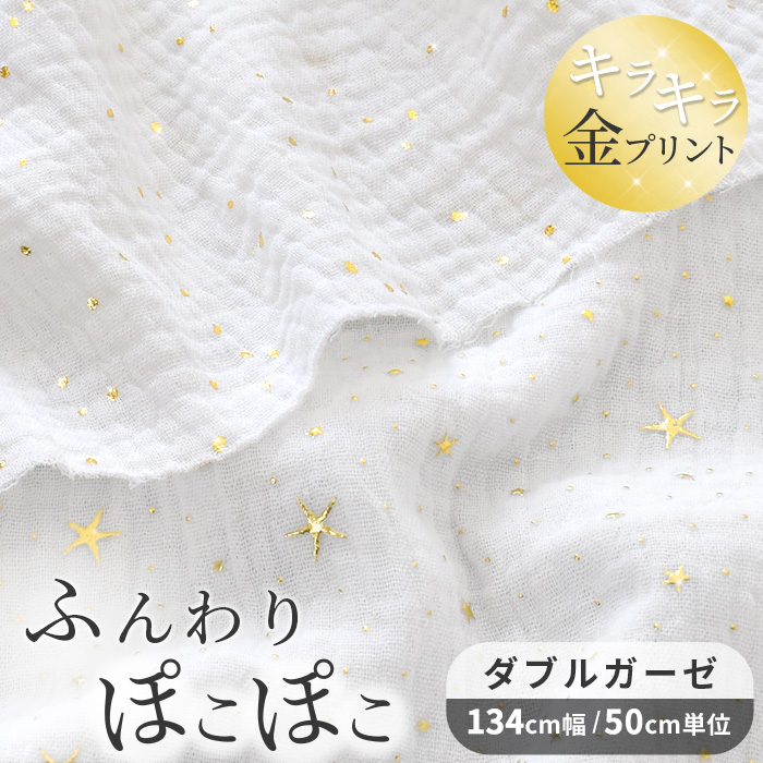 | ぽこぽこ ダブルガーゼ生地 スパークリングドット 幅広 約138cm幅 綿100% | ぽこぽこ ダブルガーゼ生地 無地 幅広 約136cm幅 綿100% |