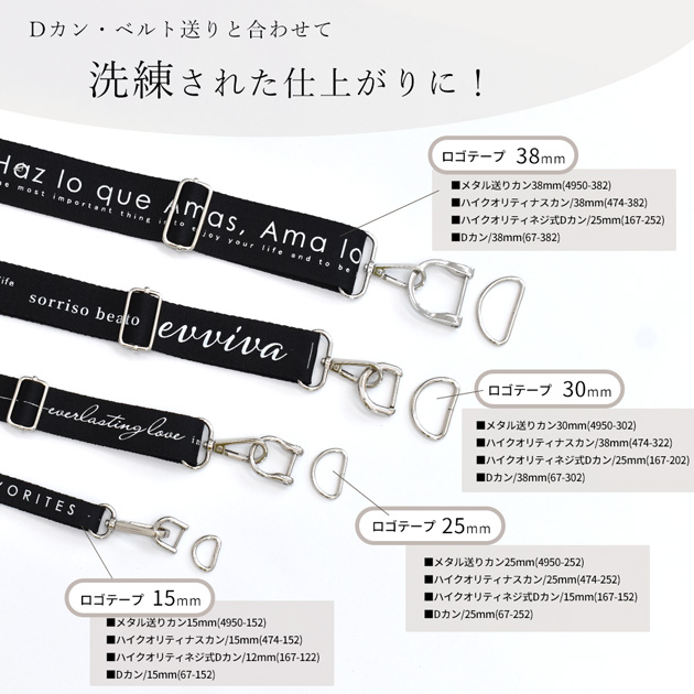 | ・メタル送りカン ・ハイクオリティナスカン ・ハイクオリティ ネジ式Dカン ・Dカン |