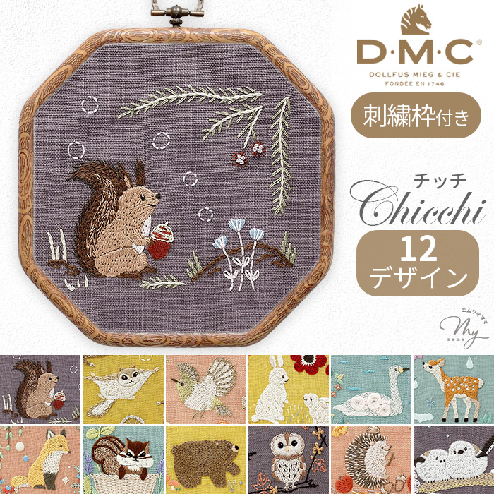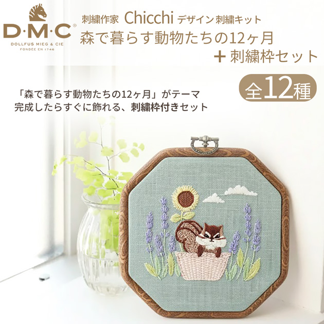 | DMC Chicchi 刺繍キット 森で暮らす動物たちの12か月 | DMC ウッド調フレーム 八角形 12.5cm |