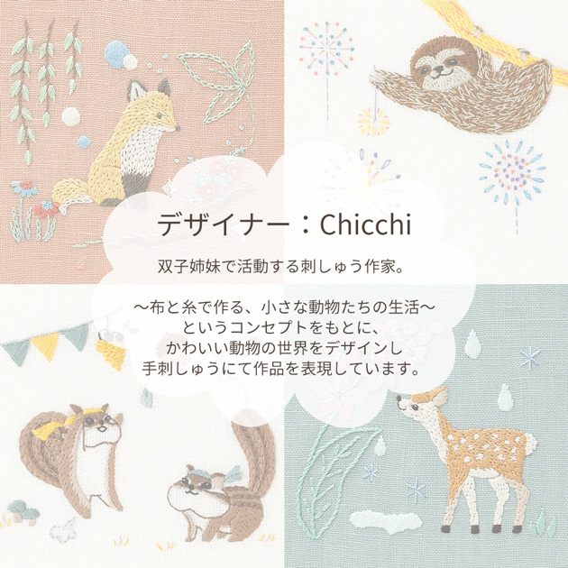 | DMC Chicchi 刺繍キット 季節を楽しむ動物たち | DMC Chicchi 刺繍キット 季節を楽しむ動物たち ウッド調フレーム セット |