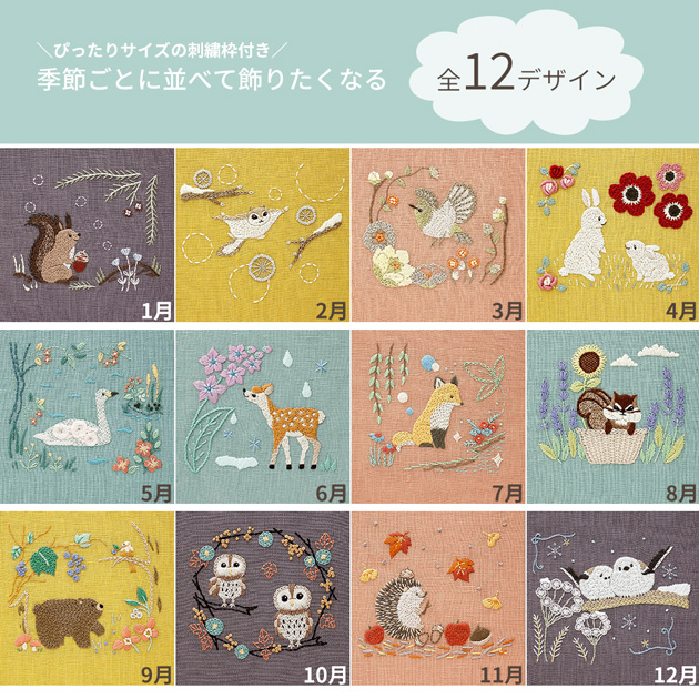 | ■セット内容 | ・DMC Chicchi 刺繍キット 森で暮らす動物たちの12か月 1点 ・DMC ウッド調フレーム 八角形 1個 |