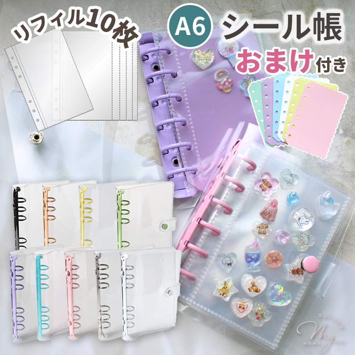 | スカラップ シール帳 台紙 剥離紙 A8 A7 A6 A5 M5 カラフル 全6色 バインダー用 穴開きシート 12〜24枚セット | シール帳 ポケットリフィル 台紙 クリア A5/A6/A7/A8/M5 6穴 3穴 10〜12枚 |