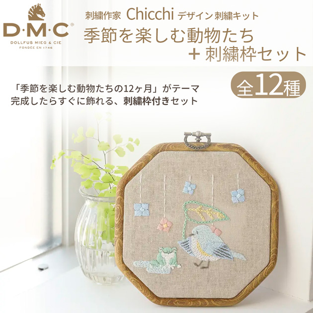 | DMC Chicchi 刺繍キット 季節を楽しむ動物たち | DMC ウッド調フレーム 八角形 12.5cm |