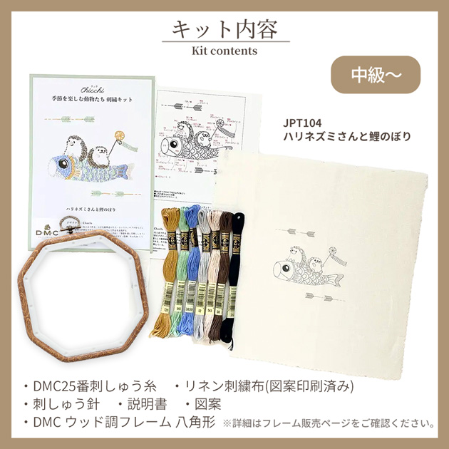| ■セット内容 | ・DMC Chicchi 刺繍キット 季節を楽しむ動物たち 1点 ・DMC ウッド調フレーム 八角形 1個 |