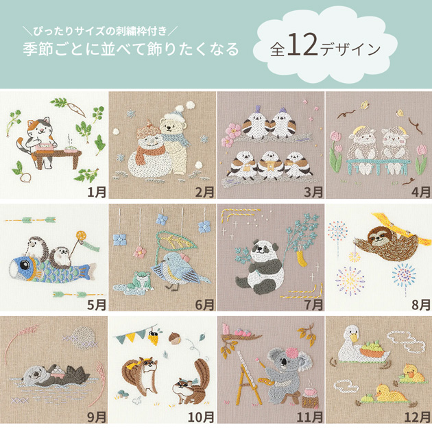 | DMC Chicchi 刺繍キット 森で暮らす動物たちの12か月 | DMC Chicchi 刺繍キット 森で暮らす動物たちの12か月 ウッド調フレーム セット |