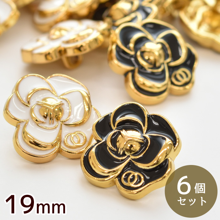 ボタン メタル エポ フラワー 19mm 6個 全2色 ■ 1.9cm 足付き レトロ 金属 ゴールド 白 黒 手芸ボタン カーディガン ■
