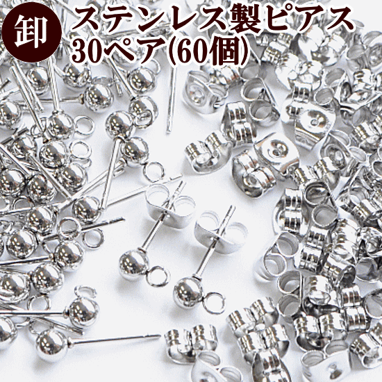 【卸売り】ステンレス 金具 SUS316 カン付き ボール スタッド ピアス 30ペア 60個 ■ SUS304 業務用 手芸 シルバー ■