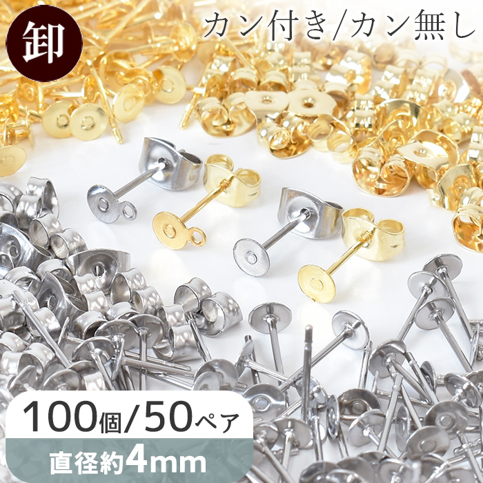 ![]() | 【卸売り】ステンレス製 カン付き ピアス金具 台座8mm 50ペア 100個 |