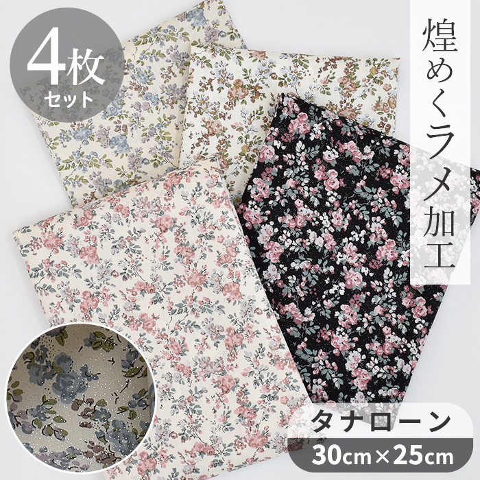 | ■サイズ | 1枚サイズ:約30×25cmのカットクロス 4枚入り ※セットには生地の耳が入る場合がございますが、耳を除いて規定のサイズとなっております。 |