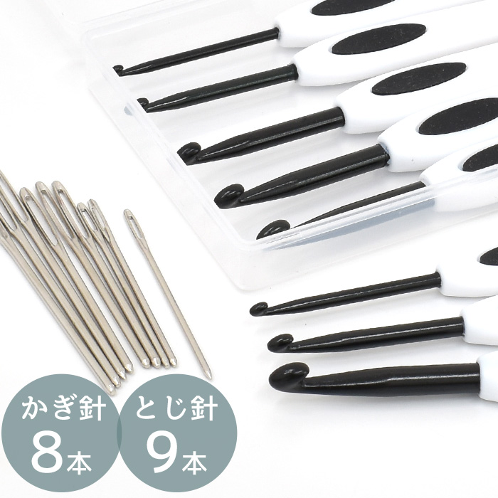 | ■サイズ | かぎ針:全長 約13.8cm とじ針:5.3cm/6cm/7cm ケース:約14.5×7.8×2cm ※詳細は画像をご参照ください | |