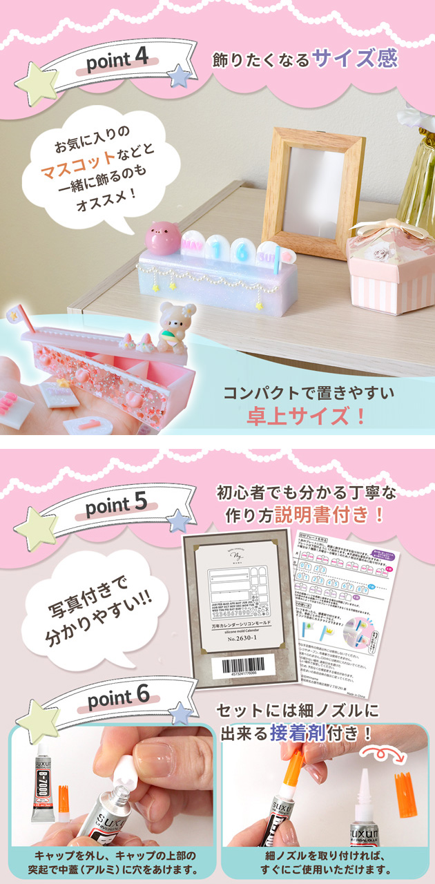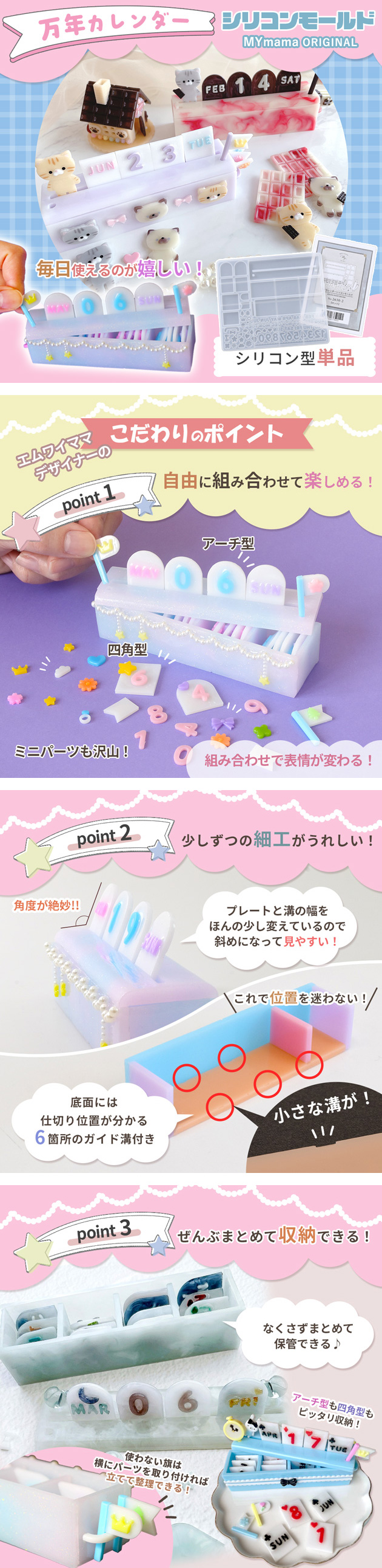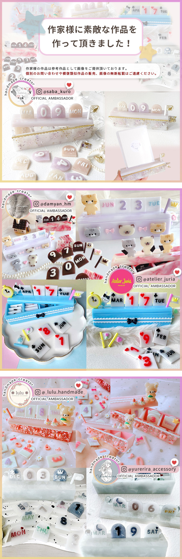 エムワイママ オリジナル モールド シリコンモールド ミニチュア カレンダー 記念日 365日 レジン レジン型 UVレジン レジン液 レベル4 ★★★★