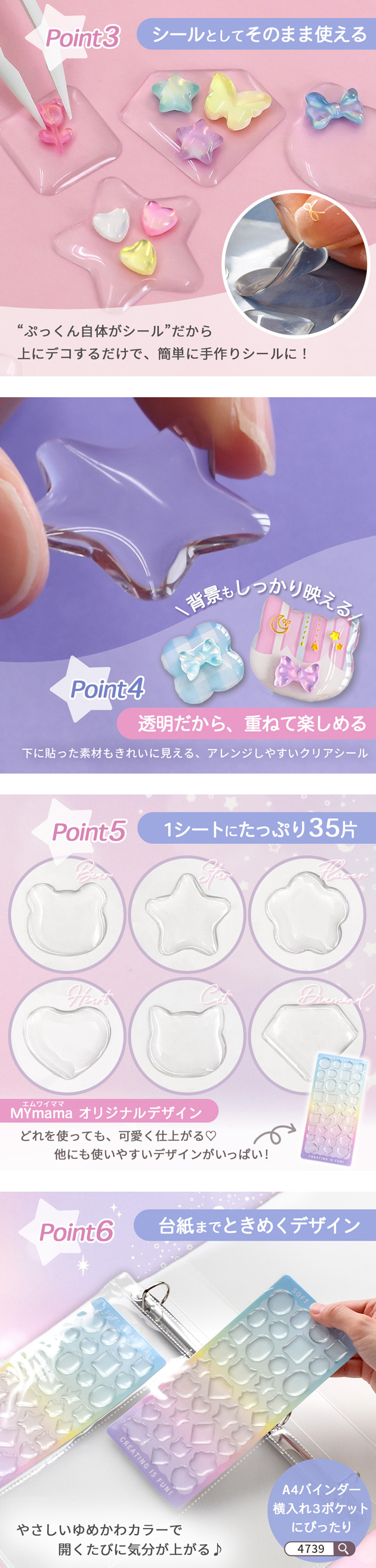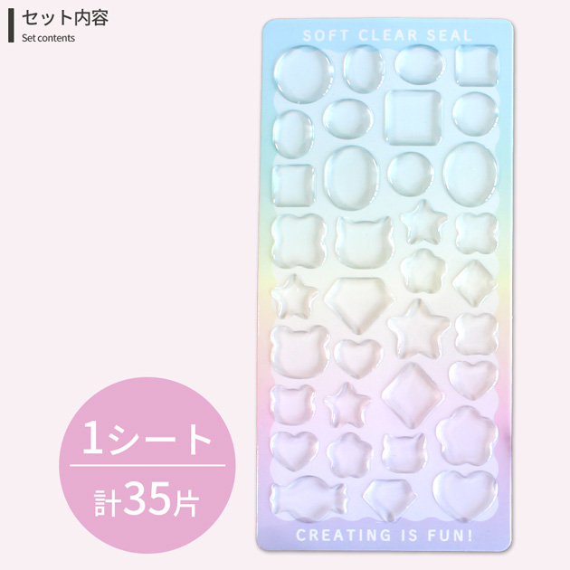 ソフト クリア シール ぷっくん 35片 1シート 可愛い ■ 透明 ぷっくりシール 立体 カボション デコ 手作り 簡単 MYmamaオリジナル ■