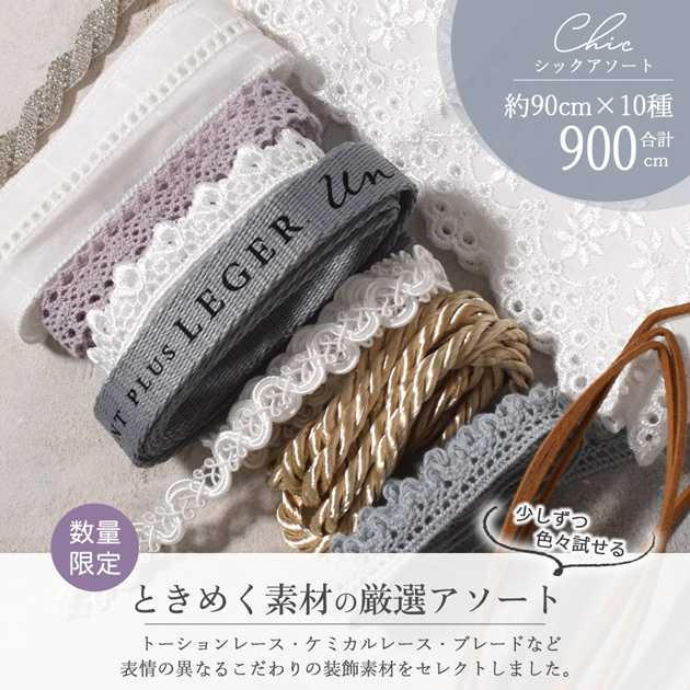 ![]() | 数量限定 レース 装飾素材セット スイートアソート 合計約7.2m(約90cm×8種) |