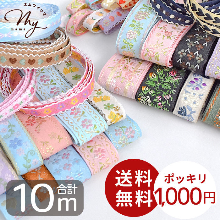 | ケミカルレースお試しセット 8種類 各1m 幅約10〜45mm | 刺繍リボン 10種セット | インド刺繍リボン 約30cm×10種 アソートセット |