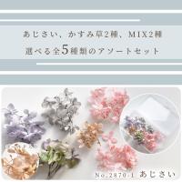 ■商品番号と種類 | 【2870-1】あじさい ※ムラ染めゴールド入り 【2870-2】かすみ草(くすみ) ※ゴールド・シルバー・ブロンズ入り 【2870-3】かすみ草(パステル) 【2870-4】MIX(ブルー)詳細:スターチス/千日紅/ポアプランツ/スターフラワー/イモーテル/シルバーデージー/アジサイ/ペティコート等 【2870-5】MIX(ピンク)詳細:スターフラワー/千日紅/ポアプランツ/スターフラワー/イモーテル/シルバーデージー/アジサイ/アジアンタムルーシー等 ※MIXにつきまして:画像が一例となります。既にセット済ですので中身のご指定はお受けできません。在庫の関係上、画像に無いお花が入るや他カラーを多く入れさせていただく場合がございます。 |