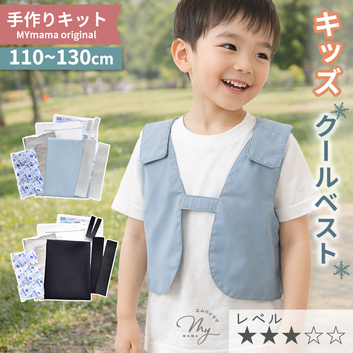 暑い季節も快適に過ごせる、保冷剤ポケット付きのキッズベストが作れるエムワイママオリジナルの手作りキット。
