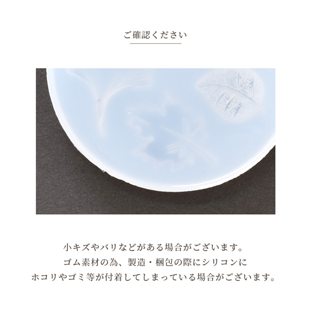 | ■ご注意 | ・シリコンモールドにバリや細かいキズ、歪み等がある場合がございます。 ・ゴム素材の為 製造・梱包の際にシリコンにホコリやゴミ等が付着してしまっている場合がございます。手作業での梱包の為完全に綺麗な状態でのパックは難しく、ご理解の上、お買い求めいただきますようお願い申し上げます。 ・レジン硬化後にモールドから抜きにくい場合がございます。拭き取り液などを隙間になじませますと取り出しやすくなります。 ・ご使用のレジン液により出来上がりの大きさがシリコンのサイズと異なる場合がございます。 上記の理由での返品交換は承ることは出来ません。 | |