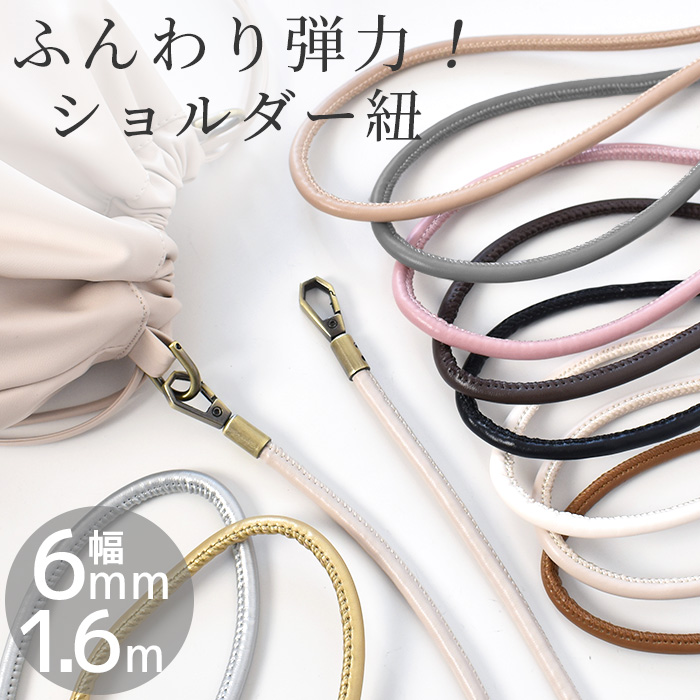 | とってもやわらかい 合成皮革生地 | やわらかい合皮で作った 平紐 | やわらかい合皮で作った 持ち手テープ丸紐(太) |