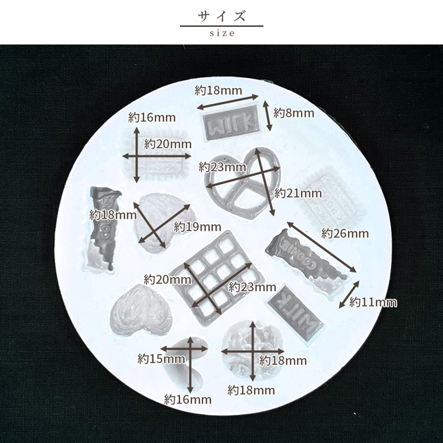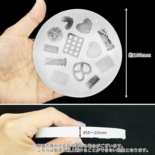 | ■ご注意 | ・シリコンモールドにバリや細かいキズ、歪み等がある場合がございます。 ・シリコンモールドの厚みが左右で異なる場合がございます。こちらは製造工程上避けることができない現象となります。 ・ゴム素材の為 製造・梱包の際にシリコンにホコリやゴミ等が付着してしまっている場合がございます。手作業での梱包の為完全に綺麗な状態でのパックは難しく、ご理解の上、お買い求めいただきますようお願い申し上げます。 ・レジン硬化後にモールドから抜きにくい場合がございます。拭き取り液などを隙間になじませますと取り出しやすくなります。 ・ご使用のレジン液により出来上がりの大きさがシリコンのサイズと異なる場合がございます。 上記の理由での返品交換は承ることは出来ません。 | |