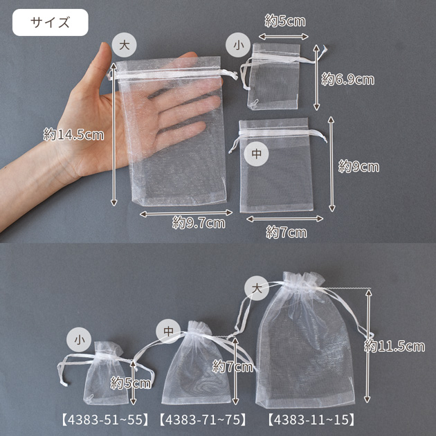 | オーガンジーの巾着袋 50枚 全4色 | MYmamaオリジナル ラッピング袋 ブラウン 約38×25cm 10枚入り |