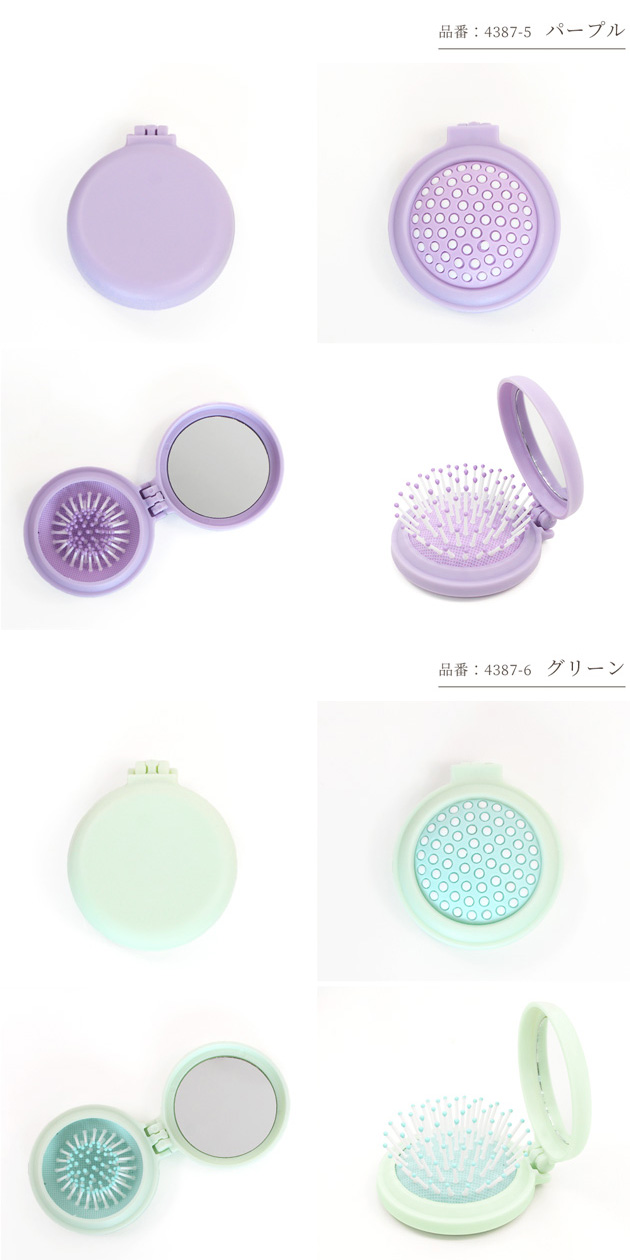 折りたたみ ミラー付 ヘアブラシ 全5色 ■ 可愛い カラフル 櫛 鏡 便利 デコ デコ土台 インスタ インスタ映え ハンドメイド 手芸 手作り ■