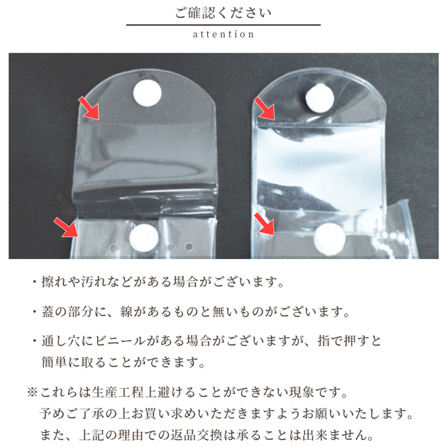 | ■ご注意 | ・擦れや汚れなどがある場合がございます。 ・蓋の部分に、線があるものと無いものがございます。 ・通し穴にビニールがある場合がございますが、指で押すと簡単に取ることができます。