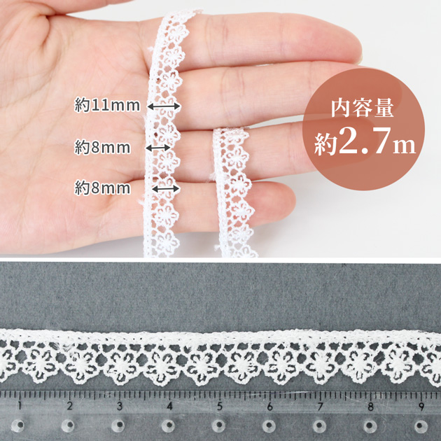 | ケミカル レース 14mm幅 4.1m 白 細 プティ フイユ | ケミカルレース パステル ハート 約14mm幅 約2.7m | 細幅 ケミカル レース ハート ホワイト ゴールド 10mm幅 1.8m |
