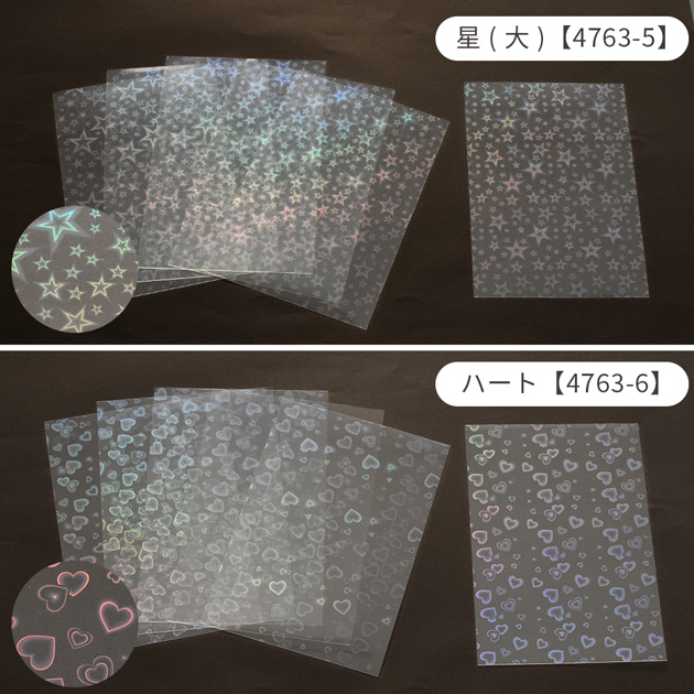 | ■商品番号・種類 | 【4763-1】 プリズム 【4763-2】 花火 【4763-3】 ランダム 【4763-4】 星(小) 【4763-5】星(大) 【4763-6】 ハート | |