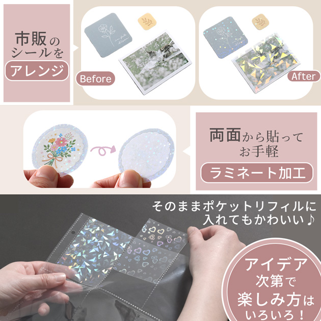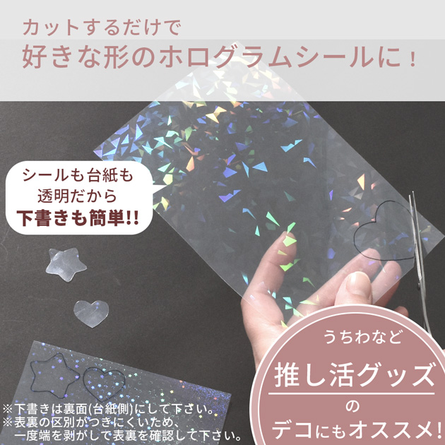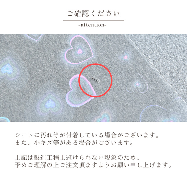 | ■ご注意 | ・ホログラムの光り方は光量や光の当たり方によって変化します。 ・ご使用の環境により、シールが剥がれてしまう場合がございます。 ・一度貼ったシールを剥がす際、剥がした跡がつく場合などがございます。 ・小キズや汚れがついている場合があります。 ・本シールを顔、体、動物などに貼ったりしないで下さい。 ・本シールを口に入れたり、舐めたりしないで下さい。小児の手の届かないところに保管して下さい。 ・シール及び台紙の角や側面で手を切る恐れがございます。 お取り扱いにはご注意下さい。 ・このシールはクラフト専用用具です。他の用途には使用しないで下さい。 ・ロットごとに色合いやサイズが若干異なる場合がございます。その場合のご返品はお受けすることができませんのでご了承ください。 ・できる限り実物のお色に近づけるよう心掛けておりますが、画像では100%同じお色を表現することが出来ません。実際のお色味より若干異なる場合がございます。 上記の理由での返品交換は承ることは出来ません。 予め、ご了承の上お買い求めお願い申し上げます。 | |