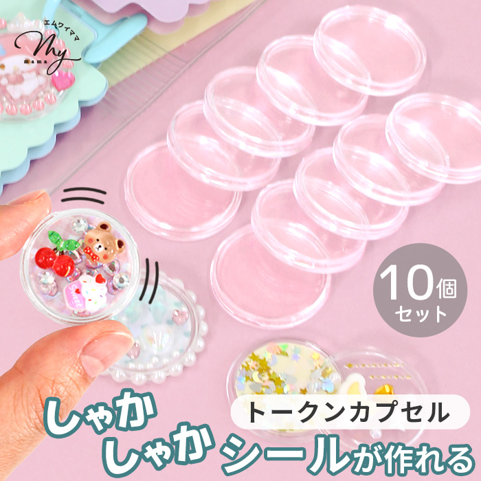 トークンカプセル カプセルトークン 10個 セット 手作り 簡単 初心者 子ども シール カプセルシール シャカシャカ シェイカー ぷっくり 透明 クリア プラスチック シール帳 コインケース メダル コイン 硬貨 収納 ケース ホルダー イベント キッズクラフト ワークショップ シンプル ハンドメイド しーるん 接着 封入パーツ デコパーツ オーロラシート