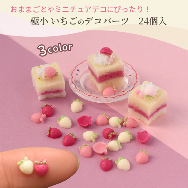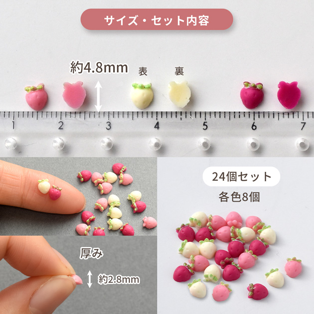 各色8個 計24個入指先サイズの極小いちごパーツ。